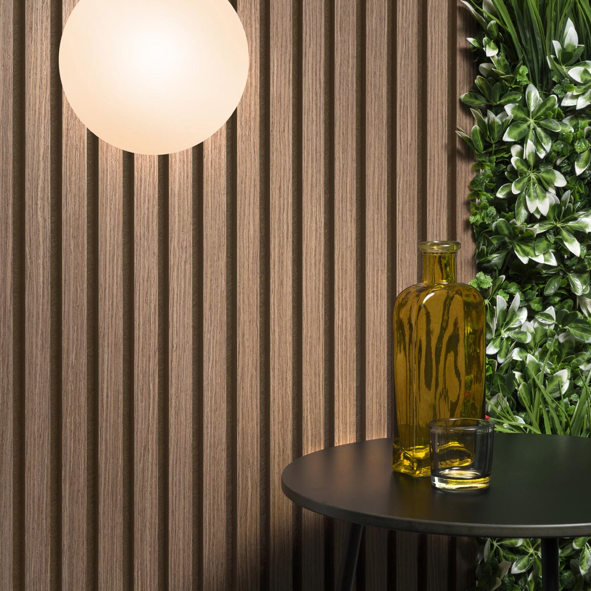 Stilvolles Interieur mit Akustikpaneelen in Dunkler Eiche