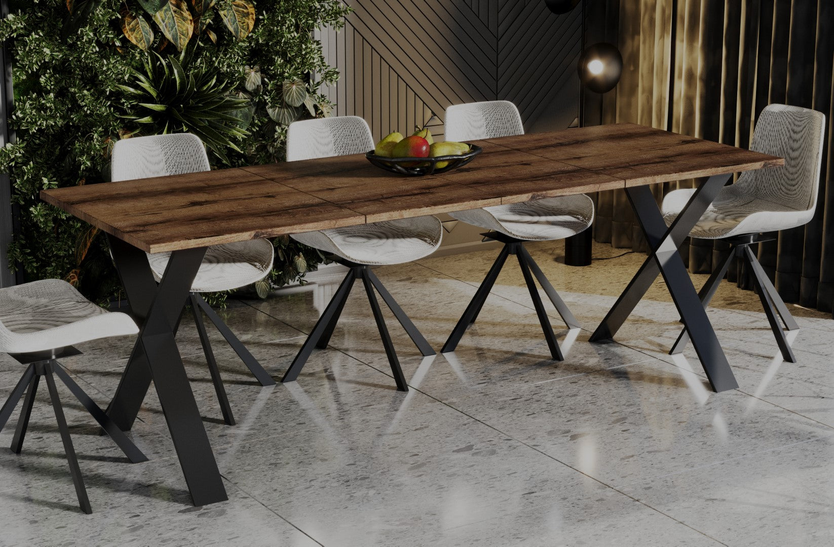 Das extravagante Schwarz Matt Metallgestell rundet das moderne Design des Tisches ab und macht ihn zu einem echten Hingucker in jedem Esszimmer.